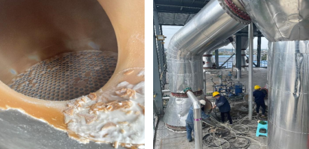 現(xiàn)場(chǎng)清理硝二效內(nèi)部結(jié)垢
