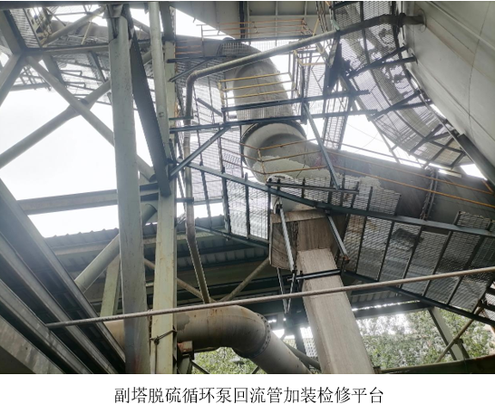 西昌藍鼎在7月初順利完成了球團脫硫循環(huán)泵管道及回流管檢修平臺的改造工程。本次改造工程歷時兩個月,涉及的改造內容有6臺脫硫循環(huán)泵管道最高位出口處以和副塔脫硫循環(huán)泵回流管全管道的檢修平臺加裝工作。